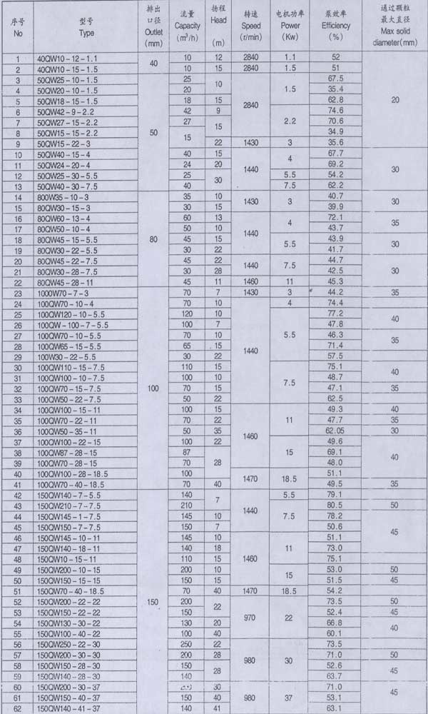 QW型系列混流式潛水泵系單級、單吸、軸向吸入、立式、機電一體、葉輪與電機軸直聯(lián),潛入泥漿、原油或清水等介質(zhì)中工作,輸送介質(zhì)的混合物比重為1:1-1:1.45。是油田石漬鉆井過程中抽送漿、清水或原油至循環(huán)泥漿池的配套設(shè)備。也是電廠礦山、煉油、造紙、印染、環(huán)保、市政工程、化工、漁塘鹽廠、釀造、大理石廠、建筑、煤礦等行業(yè)抽排泥漿和污水理想的泵型。同時,也可根據(jù)用戶的實際使用要求及介質(zhì)情況,設(shè)計生產(chǎn)其它規(guī)格型號產(chǎn)品.